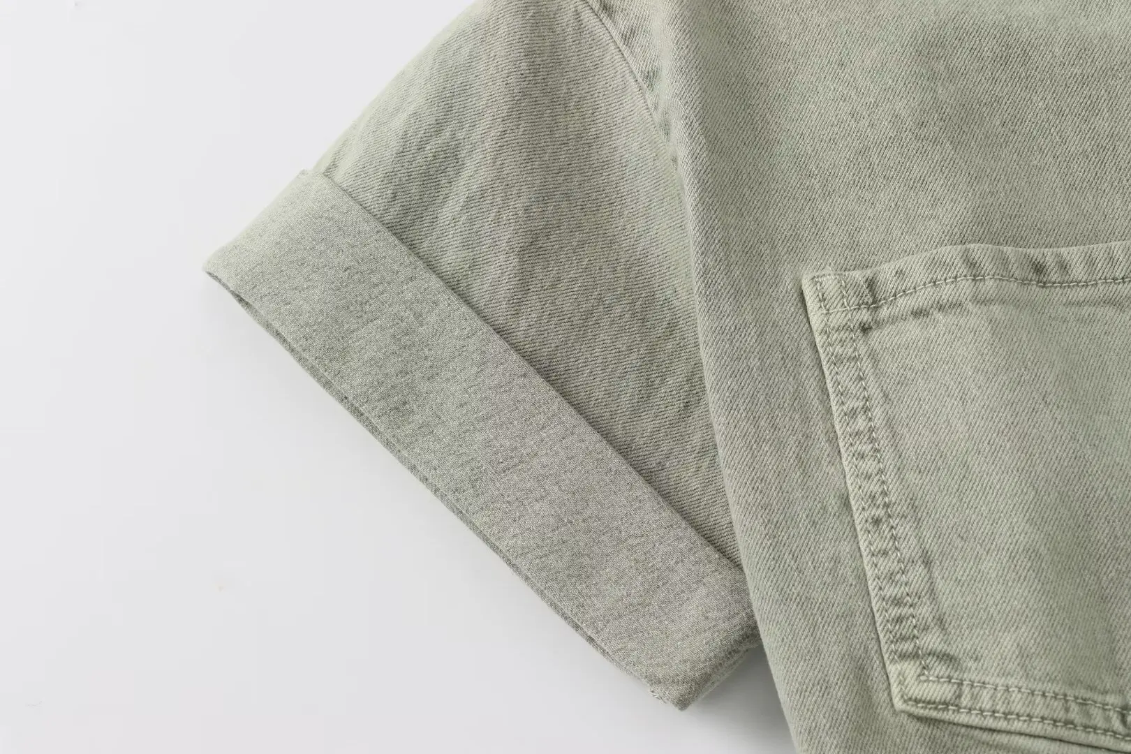 Pourquoi choisir la combinaison salopette short en jean vert claire kaki (denim) pour femme