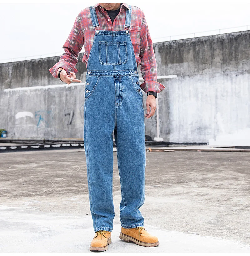 Affirmez votre style avec la Salopette classique jean bleu délavé (denim) pour homme