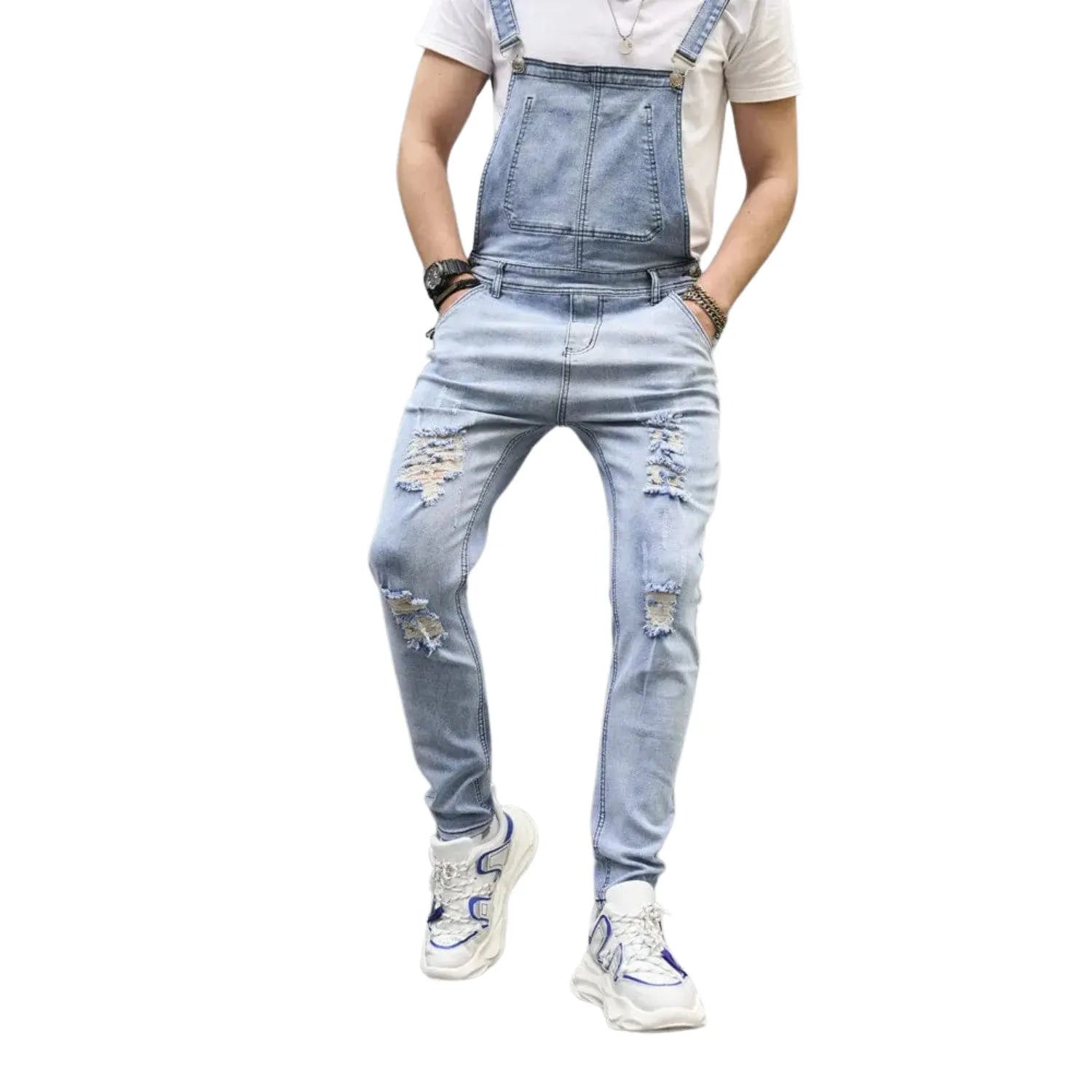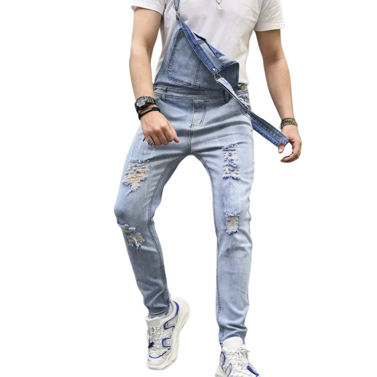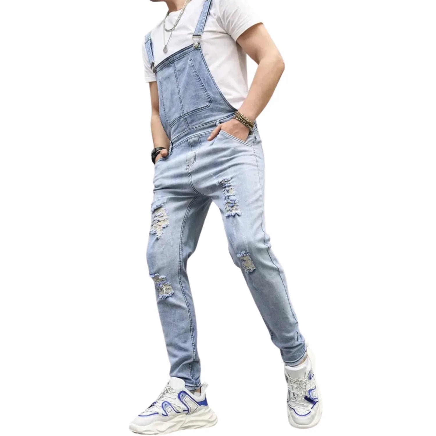 Salopette en Jean Délavé à Trous Décontracté : L’Essence du Streetwear Moderne