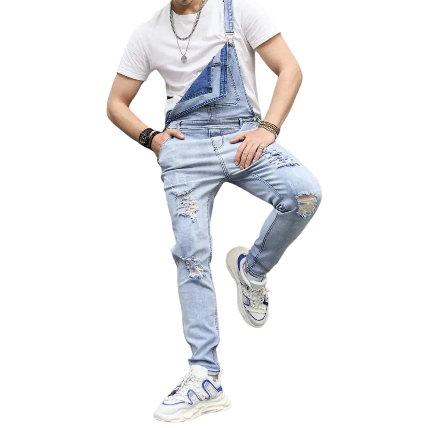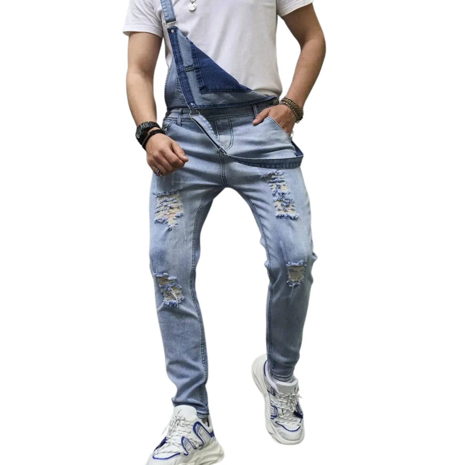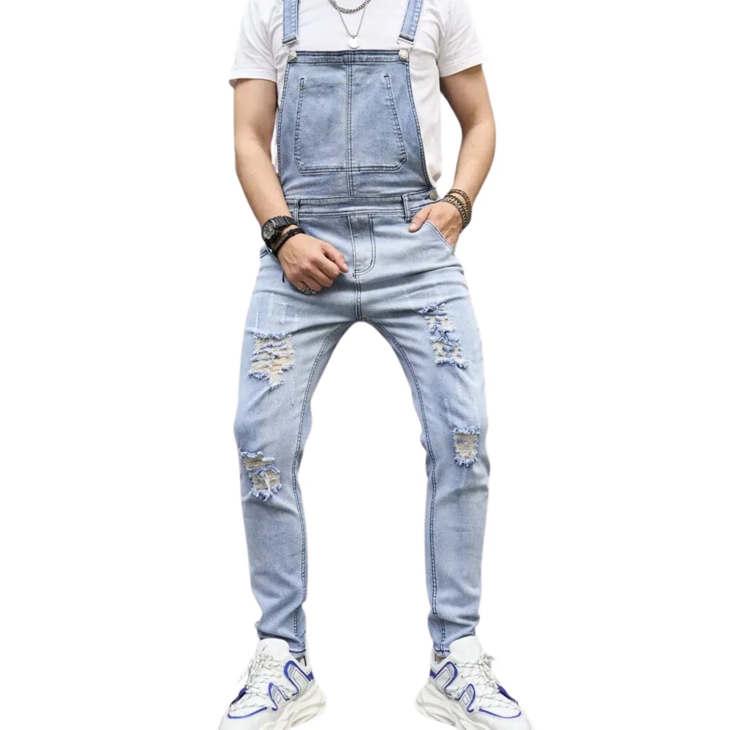 Salopette en Jean Délavé à Trous Décontracté : L’Essence du Streetwear Moderne