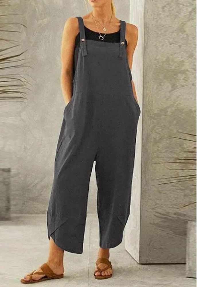 Les atouts de notre salopette en lin baggy décontracté gris pour femme