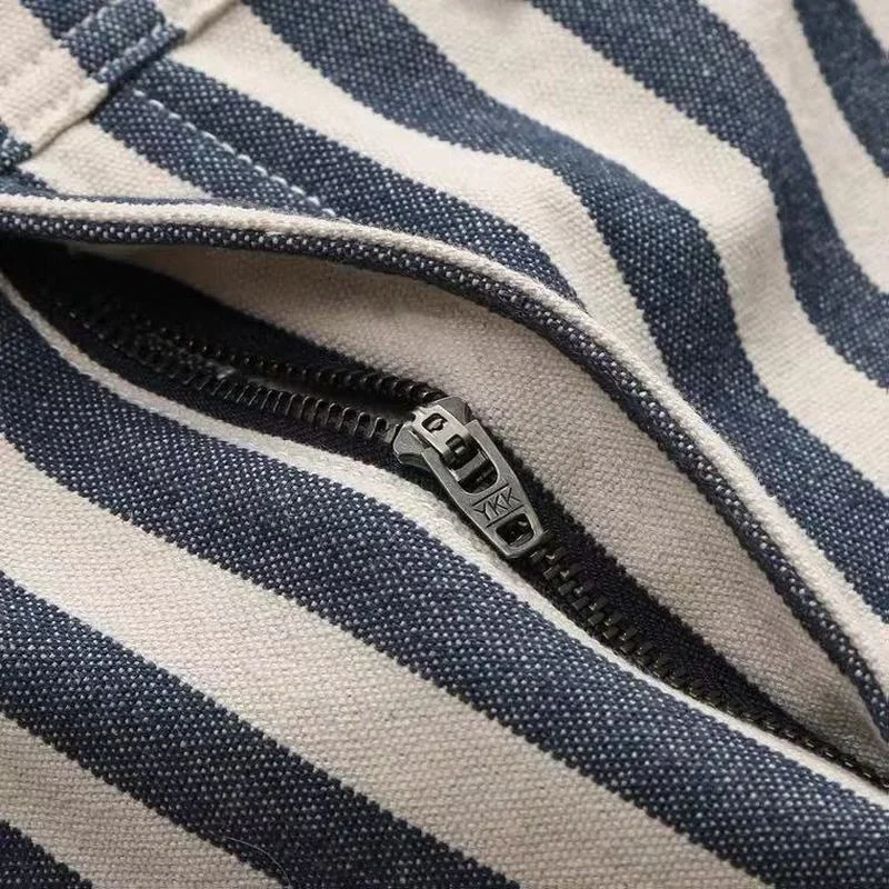 Chaque détail de la Salopette pour homme en jean rayé (demin) vintage style anglais est pensé pour refléter votre personnalité. Son tissu en denim résistant et ses motifs rayés apportent une dimension artistique à votre style, vous distinguant par une élégance singulière.