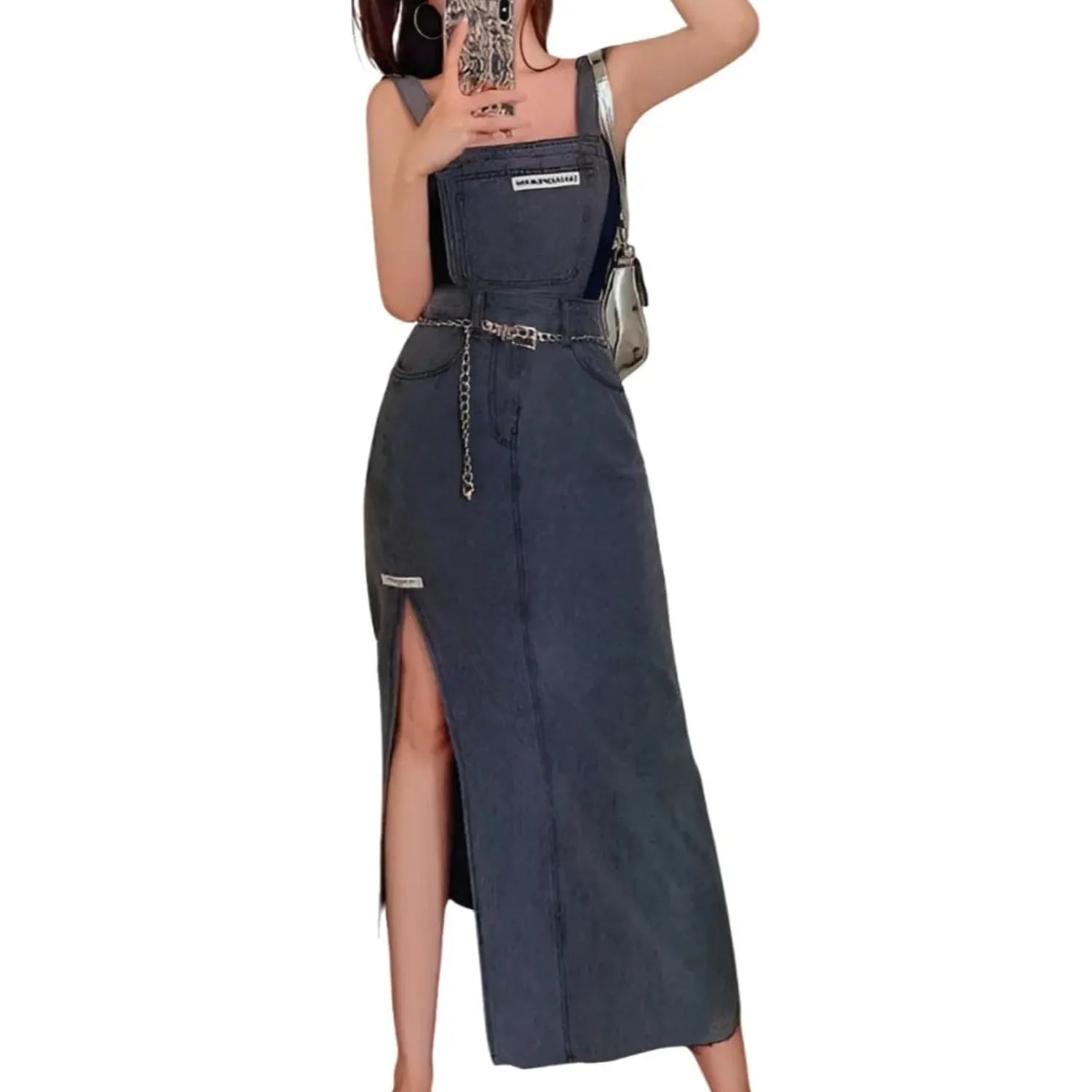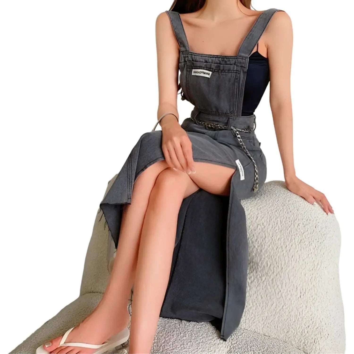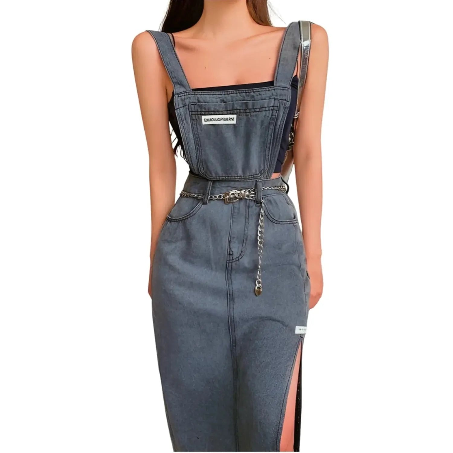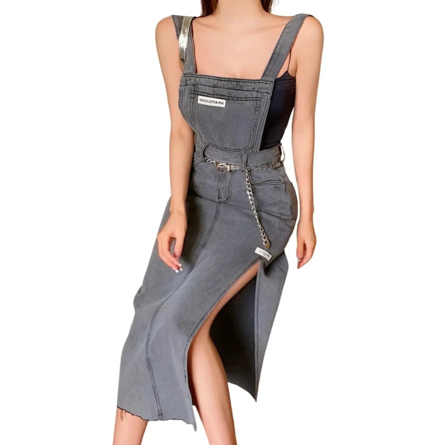 Transformez votre style avec la Salopette Robe Grise en Jean pour Femme