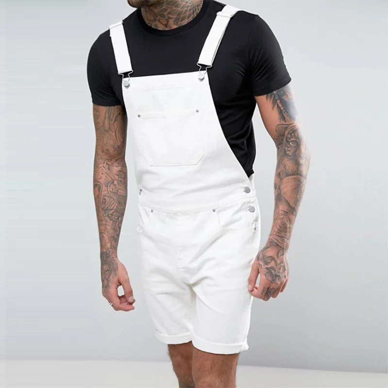 Salopette short blanche en jean pour homme pour un été stylé
