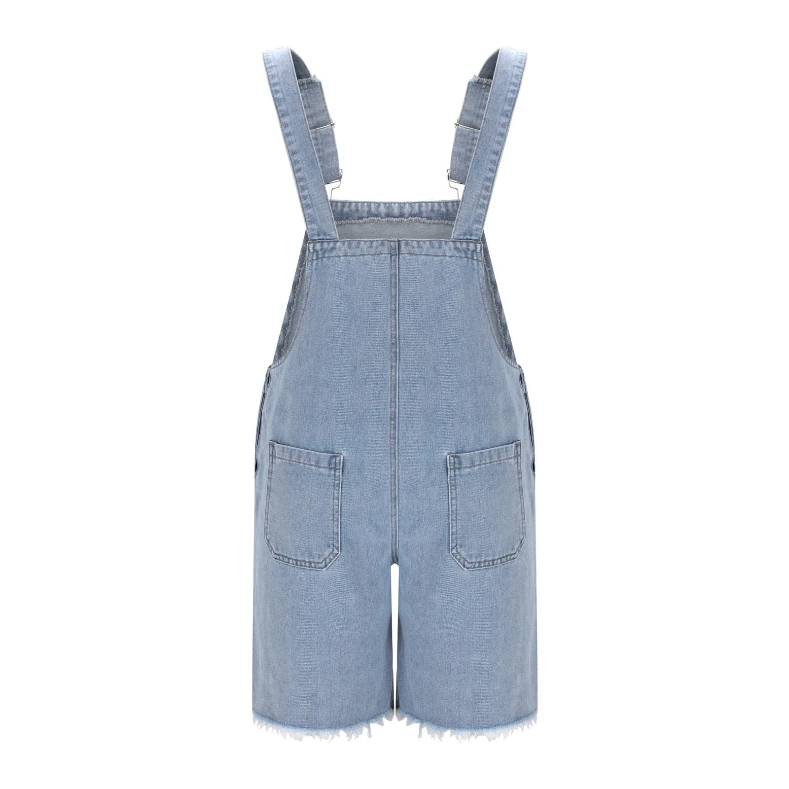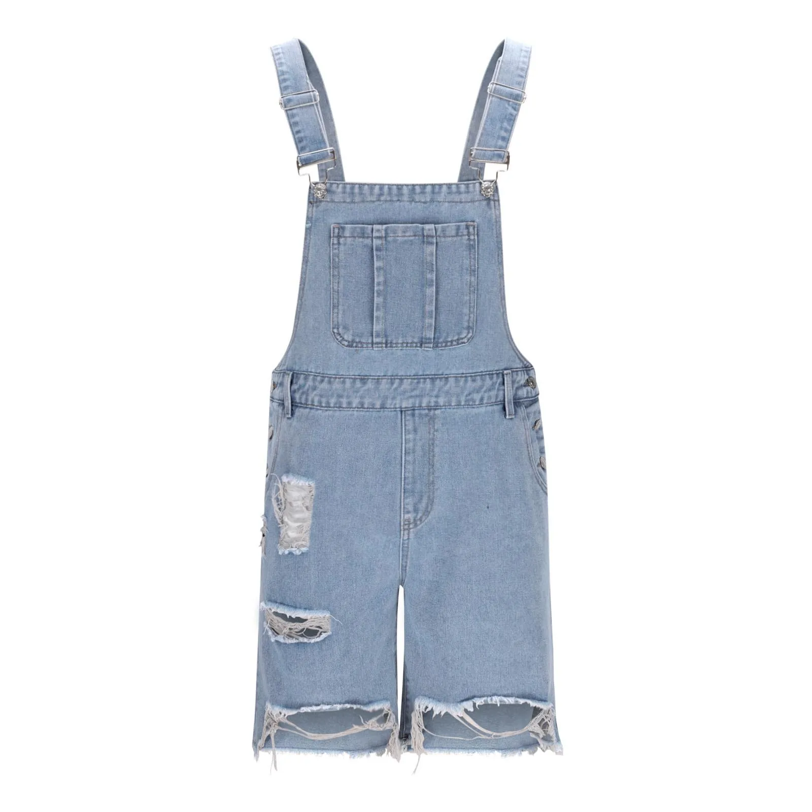 Style unique de la Salopette short en jean délavé bleu claire (demin) déchire à bretelle