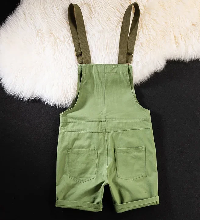 Découvrez la salopette short homme vert cargo en coton à bretelle pour un été stylé
