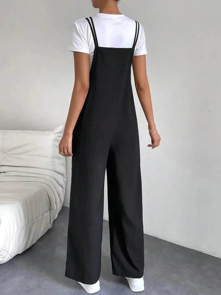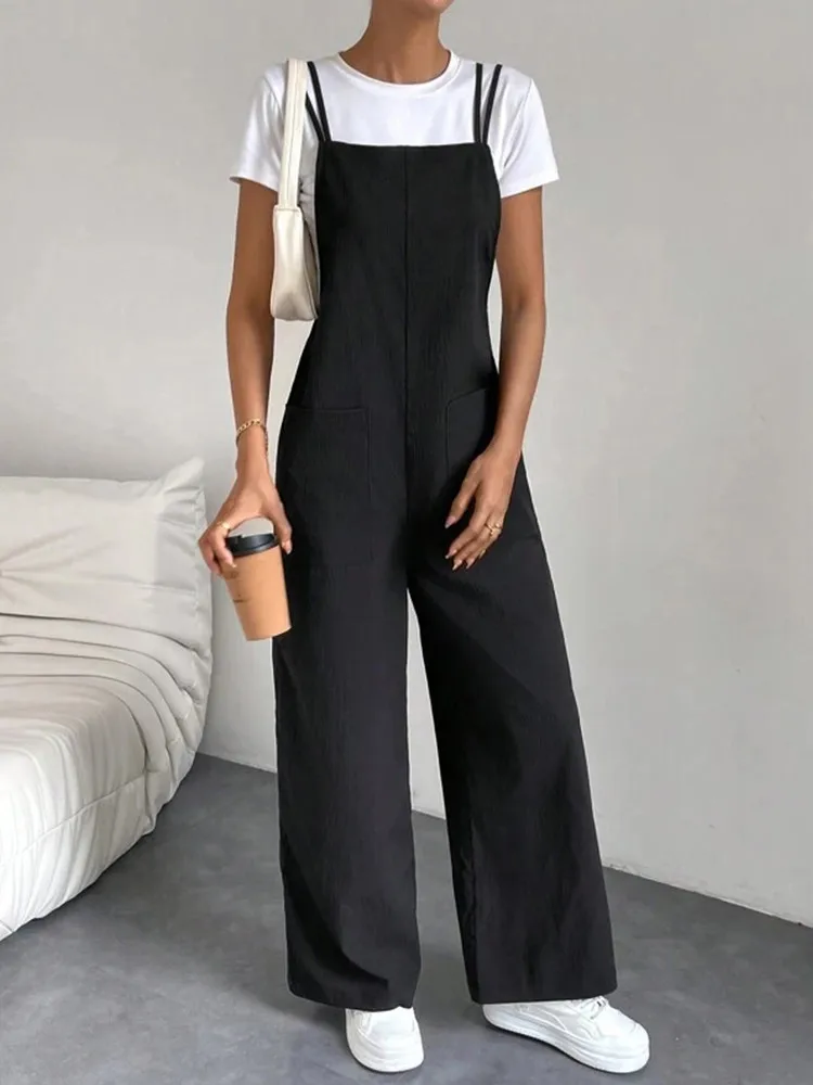 Polyvalence stylistique de la Salopette tenue pour femme noir en coton